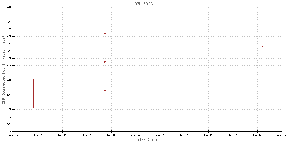 During this period, the Moon will reach its first quarter phase on Friday, April 24. At that time, the half-illuminated moon will lie 90 degrees east of the Sun and will set near 03:00 local summer time. This weekend, the waxing crescent moon will set during the early evening hours and will not spoil meteor observing as long as you keep it out of your field of view...