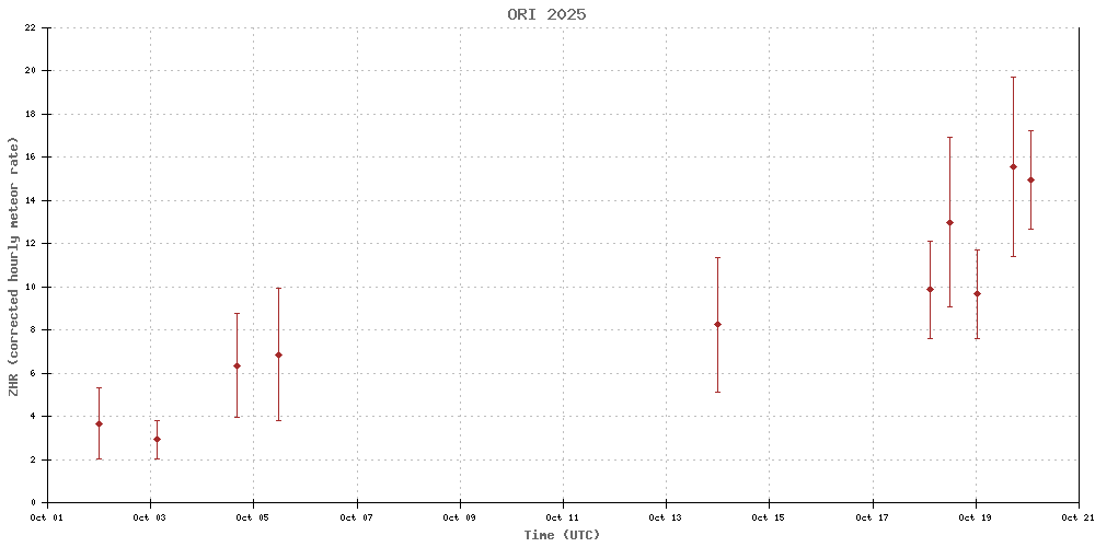 During this period, the Moon reaches its new phase on Tuesday, October 21st. On that date, the Moon will be located near the Sun and will be invisible at night. As the week progresses, the waxing crescent Moon will enter the evening sky but will not interfere with meteor observing...