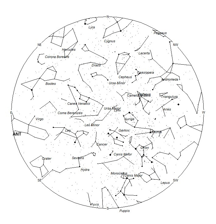 The radiant (the area of the sky from which meteors appear to originate) positions and rates listed below are exact for Saturday night/Sunday morning, January 3/4. These positions do not change greatly from day to day, so the listed coordinates may be used throughout this entire period. Most star atlases (available online, in bookstores, and at planetariums) include maps with celestial coordinate grids that can help you locate these positions in the sky.