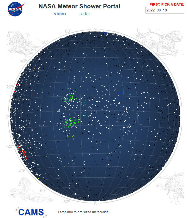 18AQR_18082022 Published August 20, 2022 at 735 × 858 in Unknown meteor shower outburst on Aug.16-17 Next → Figure 1d: Meteor radiants of meteor recorded by CAMS network on Aug. 18, 2022. Credit: Nasa/CAMS/Peter Jenniskens
